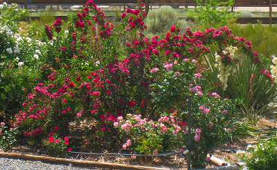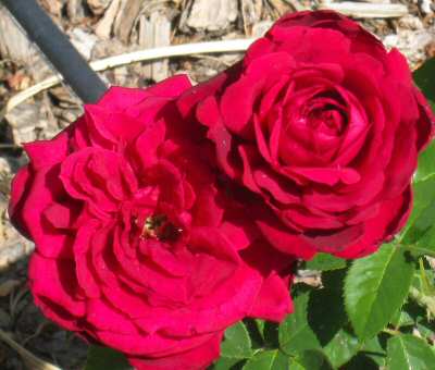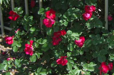 | Common Red Rambler - many blooms this year. | Black Magic - a deep red rose. |