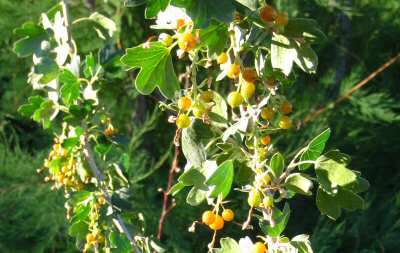 | We have a couple mounds of these out back. The plant itself is singularly unattractive and I have been tempted more than once to dig it up. Nice blooms in the spring though. | These are elderberries on the elderberry tree. Not quite what I expected. The fruit are sweet and slightly tart. It would take a whole lot of these to make a bottle of elderberry wine. |