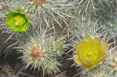 | Cholla in bloom | New pads on one of NotoLover's donations. |